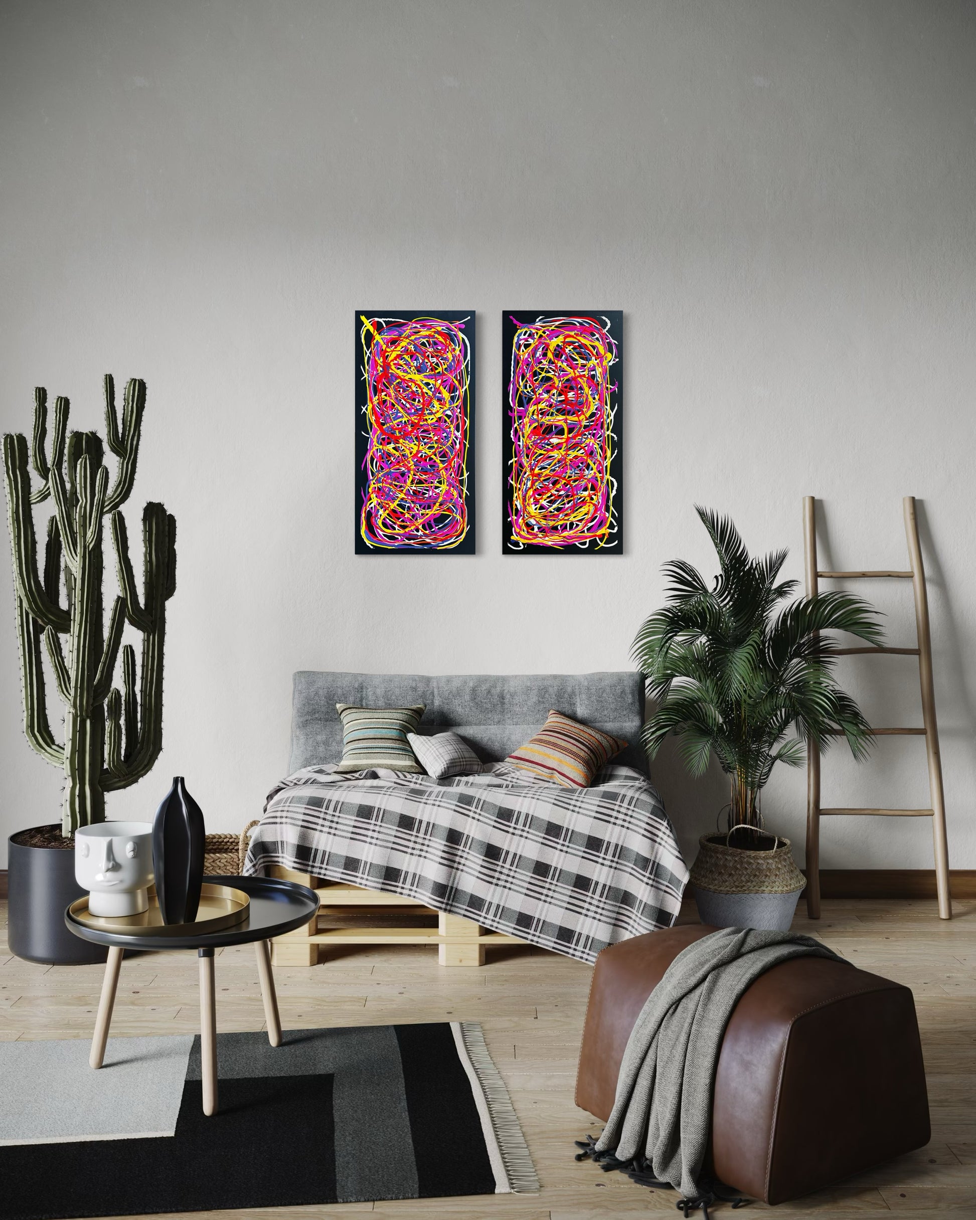 This unique, original artwork is crafted on a premium, double-thick gallery canvas and can be displayed either vertically or horizontally. Purchased together as one piece. It includes a Certificate of Authenticity, confirming it as 1 of 1