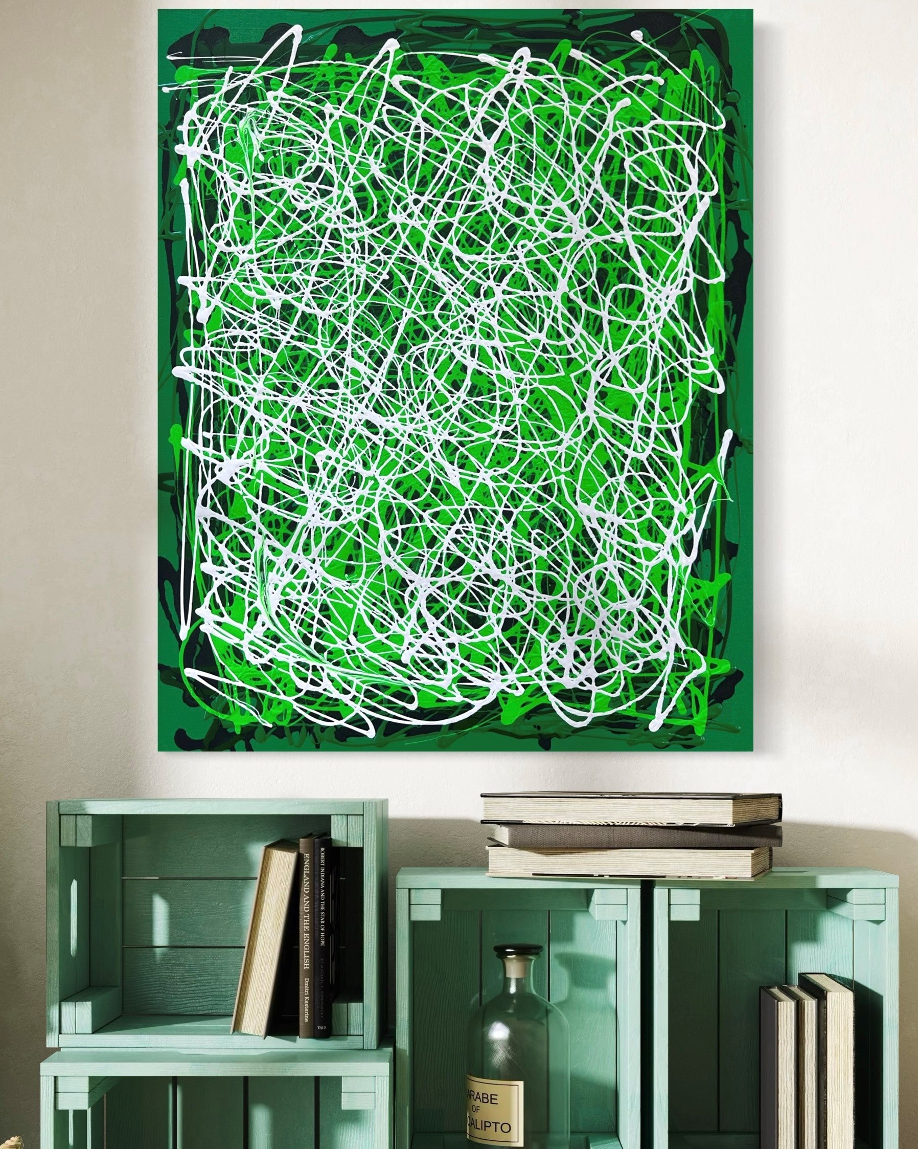 ‘Wicked’ captures the electrifying essence of The Wizard of Oz through a spellbinding mix of greens, whites, and hypnotic tones. This dynamic piece evokes magic, mystery, and a touch of enchantment.